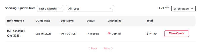 - We've listened to your feedback! The Quote List screen is changing to add the Gemini Quote number (if applicable), show the full Job Name, and re ordering some of the fields in order of importance.