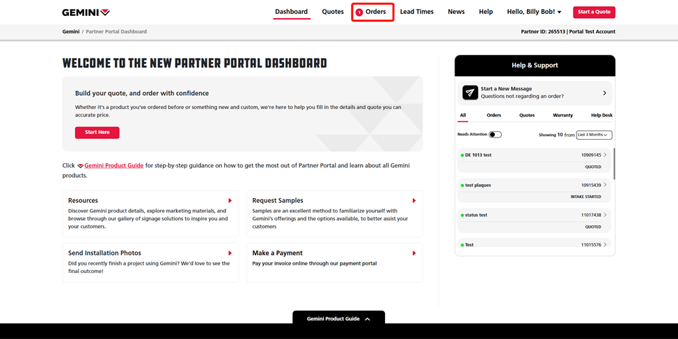 Note: For help navigating between quotes and orders via the Help and Support panel, click here.