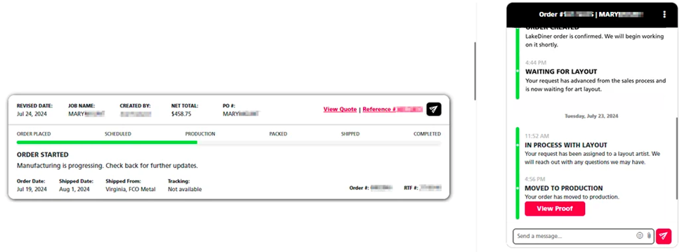 7. Once the art has been approved, your order will enter Order Started status to enter the production process.