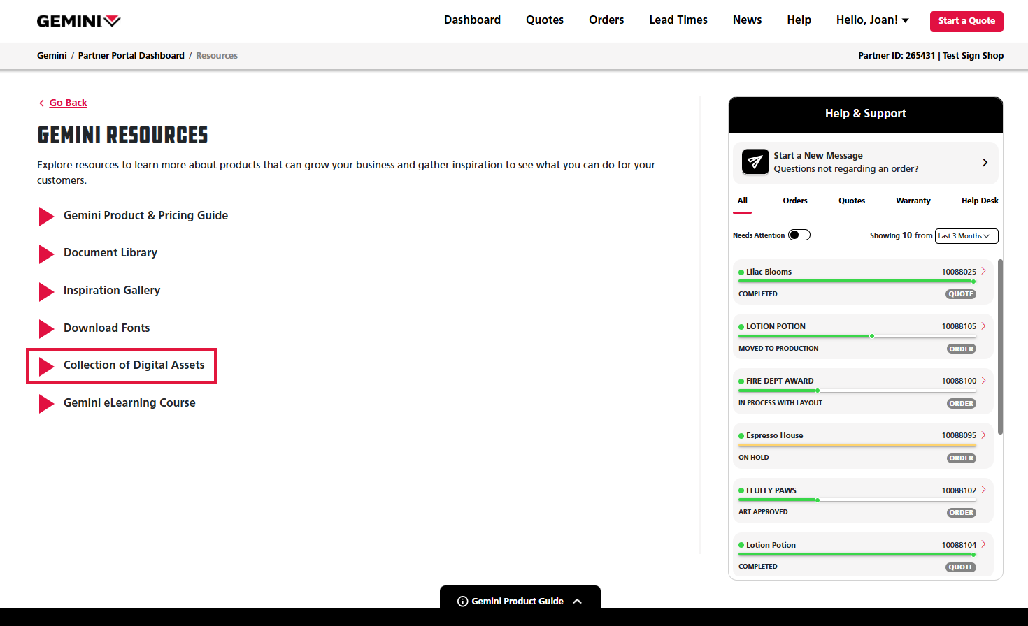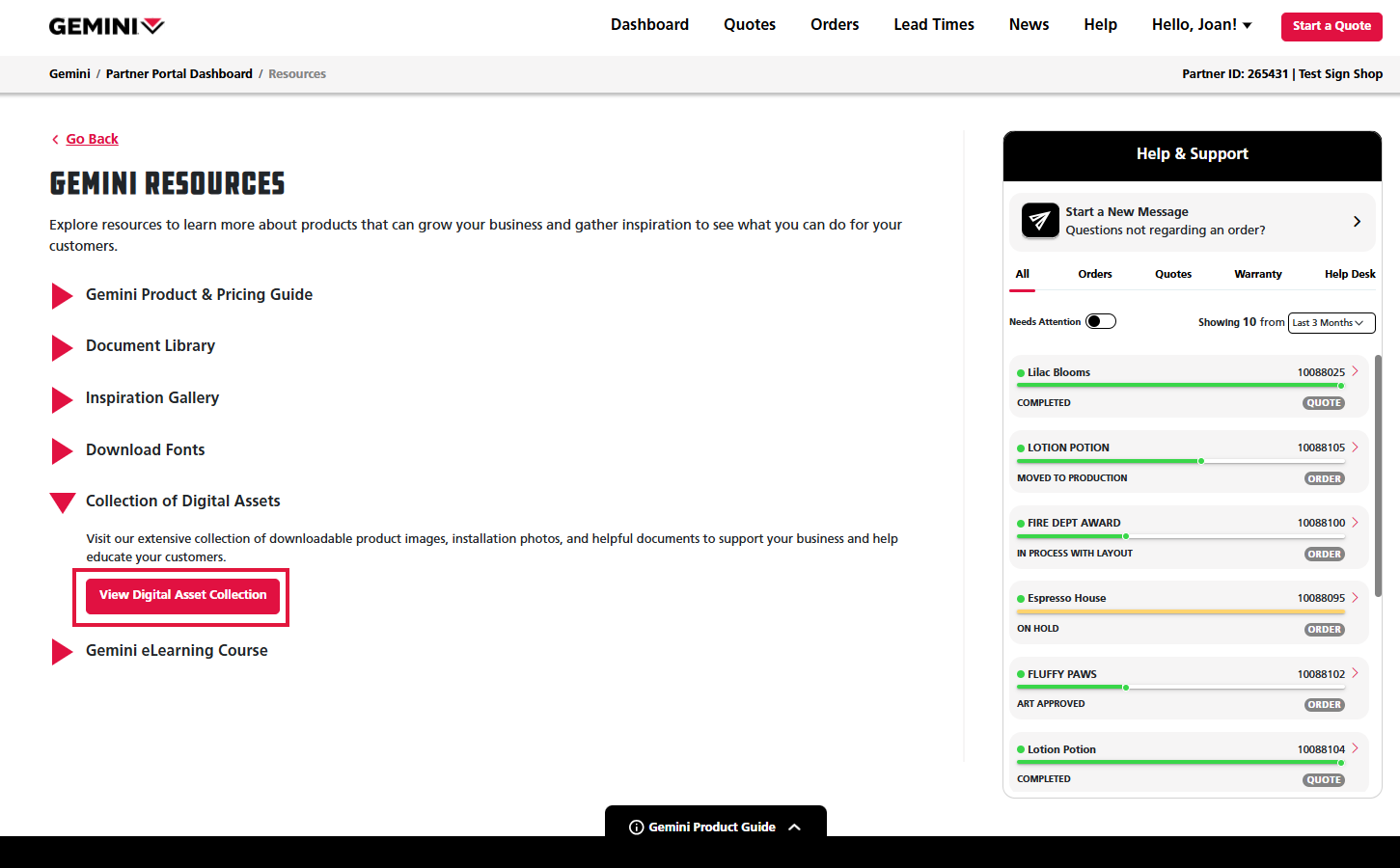 If you have any questions while trying to download an asset, return to the Partner Portal page. Click on the Start a New Message button in the Help & Support panel found at the right of the screen to contact your customer experience team.