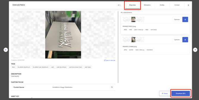 7. In the Overview tab, click the blue Download paperclip button at the bottom right corner to batch download.