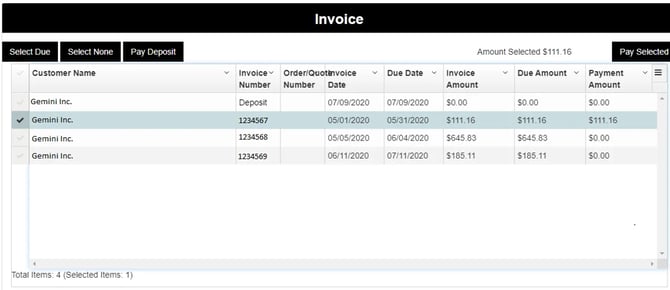 2. Within the Invoice section on the dashboard page, all open invoices will be listed. Click on an invoice number listed to open it on a new screen.