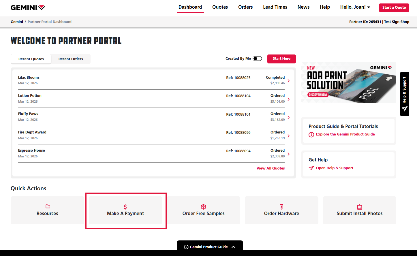 You can pay a deposit for your orders within the Online Payment Portal. You can choose the amount and payment type you would like to use as well. To begin, follow the steps below.