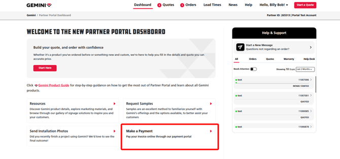 2. Within the main Dashboard homepage, click on the Make a Payment tile on the middle right to access the Payment Portal.