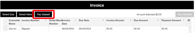 4. Within the Payment Portal dashboard, click the black Pay Deposit button at the top left to navigate to the Edit Deposit Page.