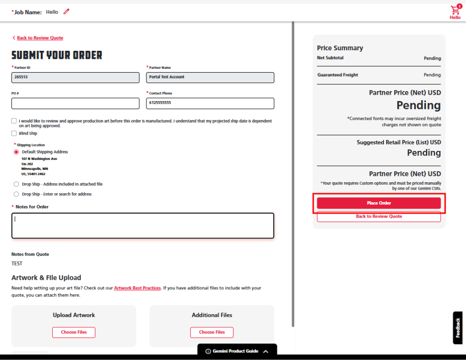 8. Fill in your contact information and submit your order by clicking the red Place Order button at the bottom right under the Price Summary.