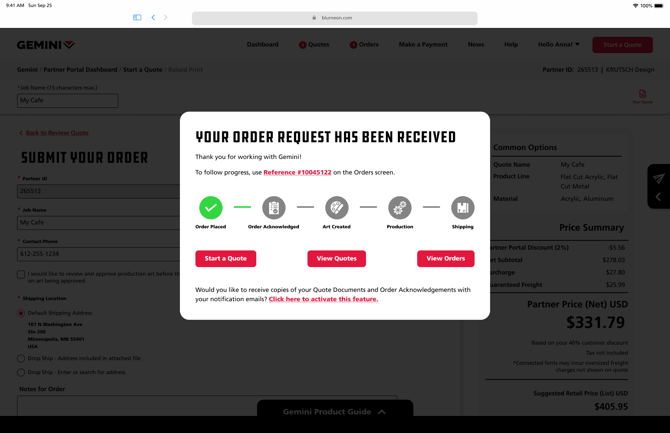 Once you review your quote, you can place an order. Follow the steps below to place an order in Partner Portal.