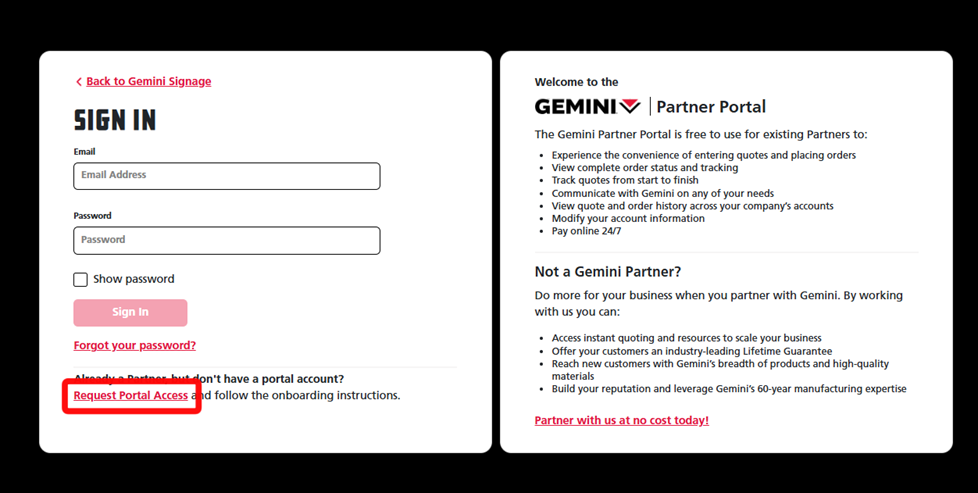 For existing partners who have not used Gemini's Partner Portal, you can request access for an account, enabling quick and convenient quoting, ordering, and support. Simply follow the steps below to learn how to request access to your account today.