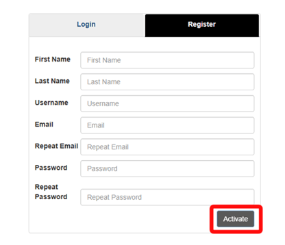 4. Fill in your information and click the grey Activate button at the bottom right corner to receive an activation email at the email address provided.