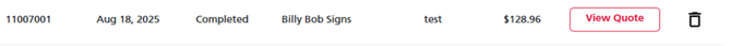 Note: In the Quotes tab, you can find your quote history. Quotes with a View Quote button are completed and eligible to be turned into orders. Those with a Finish Quote button are incomplete and cannot be turned into orders until finished.