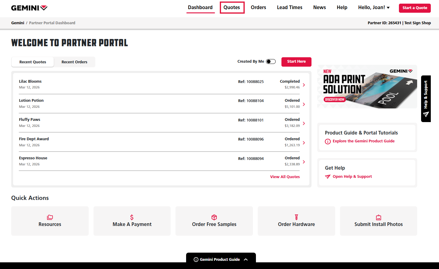 Once a quote is created in Gemini's Partner Portal, it is accessible to order for up to 30 days. Once it has expired, you will be unable to convert that quote into an order. You can update the quote by modifying your selection. To update an expired quote, follow these easy steps.
