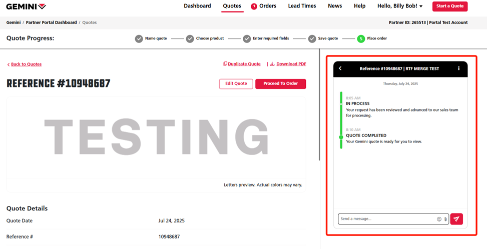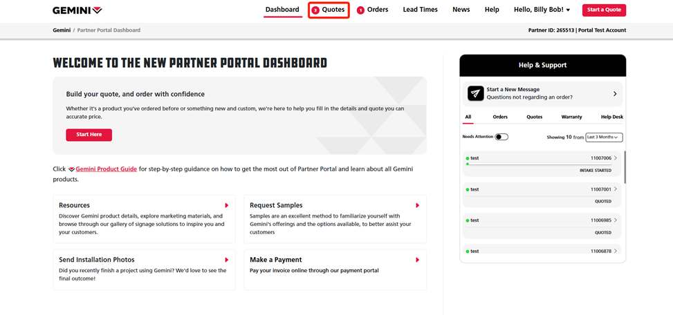 Gemini's Partner Portal gives you the ability to easily create and view all Gemini quotes, keeping everything organized and easy to track across your company's Partner Portal account. If you create a quote, you can view the status of your quote by following the steps outlined below.
