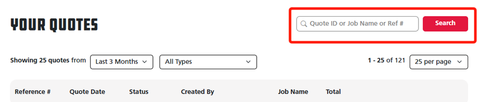 Tip: You can enter your quote's ID, Job Name, or Reference Number in the search bar at the top right to pull up your quote faster.