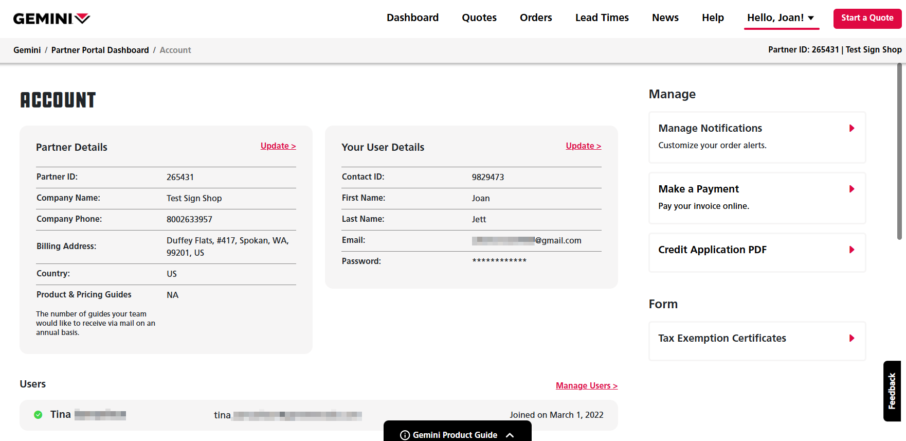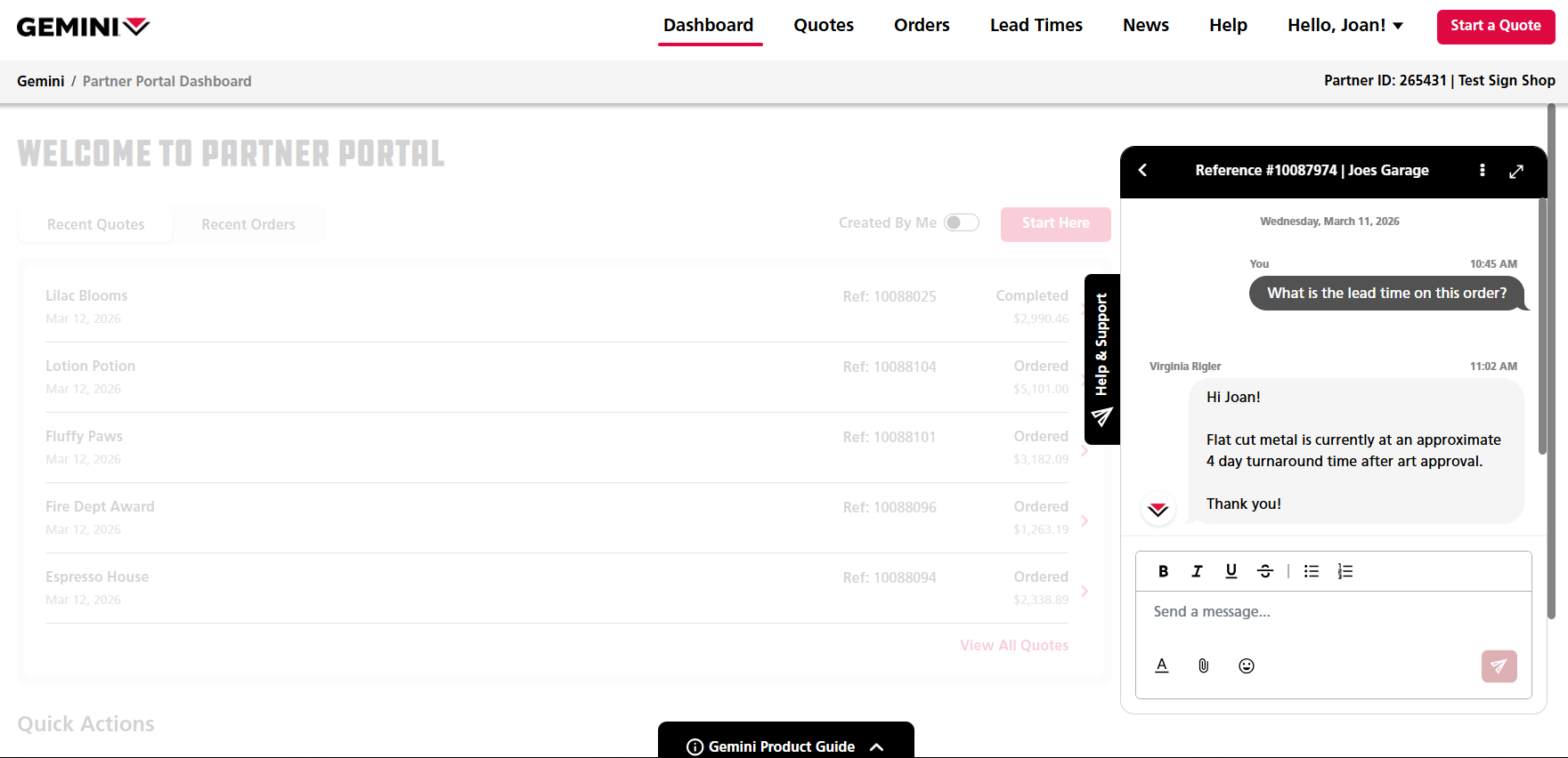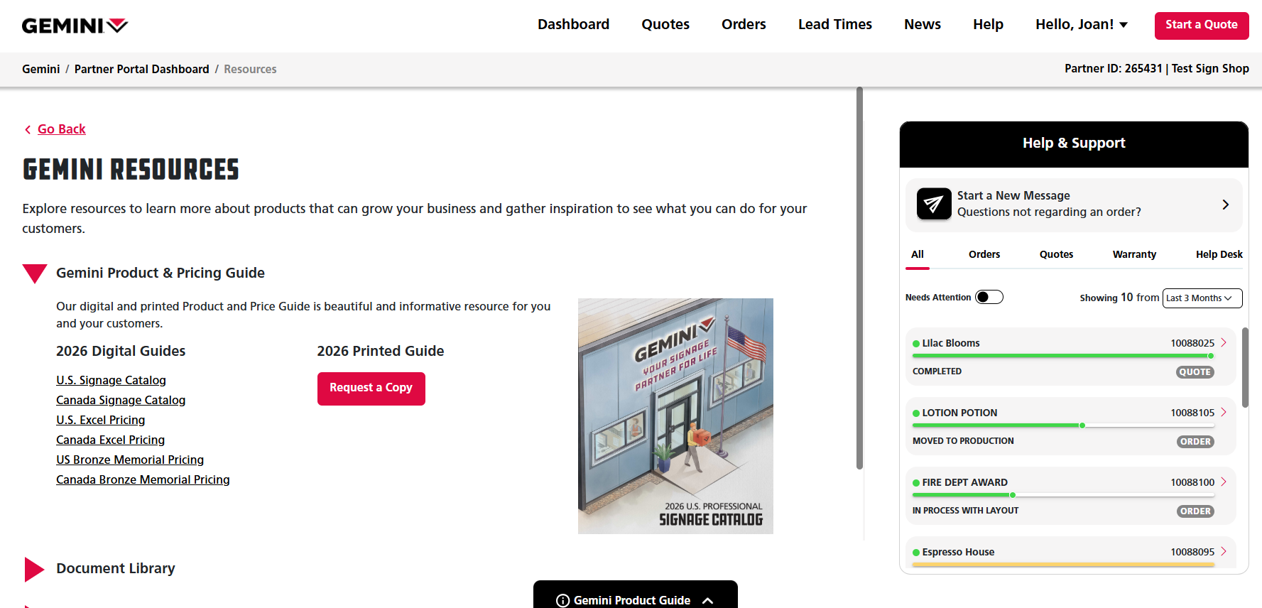 From instant quoting and ordering to receiving answers to complex questions, Gemini’s Partner Portal saves you time so you can spend it on growing your business. Partner Portal is available 24/7 and keeps your project information all in one place.