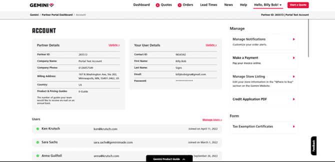 From instant quoting and ordering to receiving answers to complex questions, Gemini’s Partner Portal saves you time so you can spend it on growing your business. Partner Portal is available 24/7 and keeps your project information all in one place.